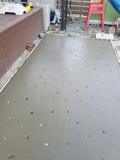 ↑もう一面の土間コンクリートには化粧砂利を埋め込んでいます。