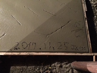 ↑土間コンクリートに手形や枝を使ってお客様に模様を付けて頂きました。