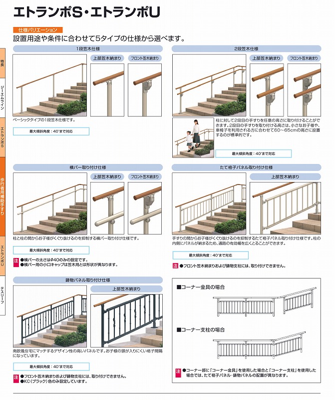 手すりでも 笠木の1本のものから転落防止のパネルのついているものまであります